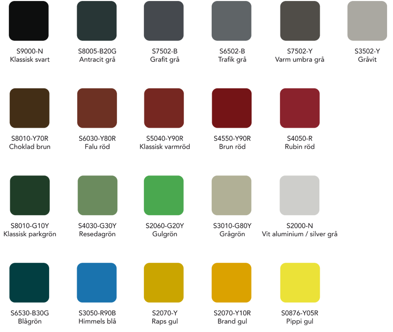 Välj mellan våra standard klassiska NCS-färg kulörer