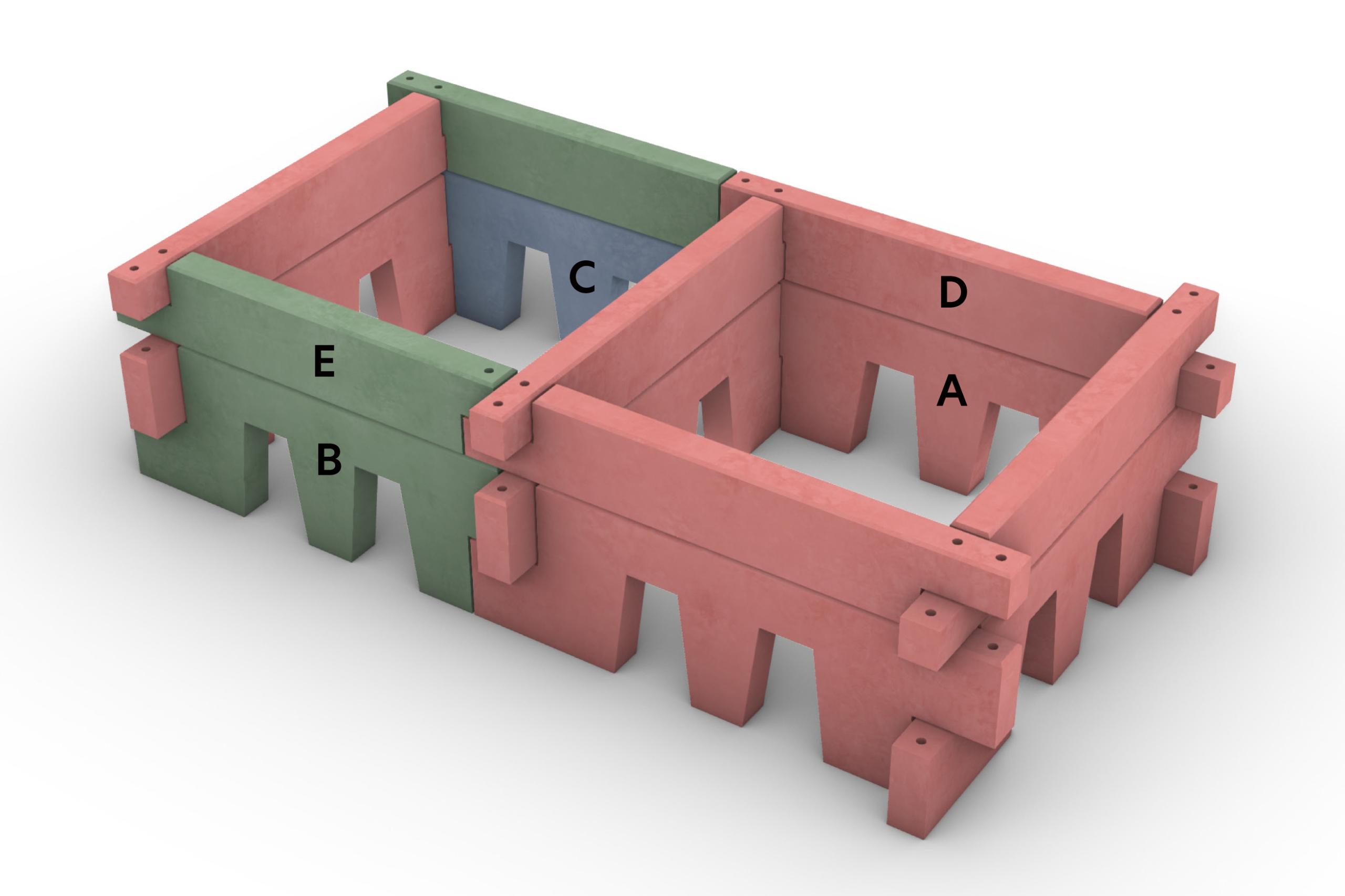 Markplattor placeras under prefab betongelmenten i samtliga hörn