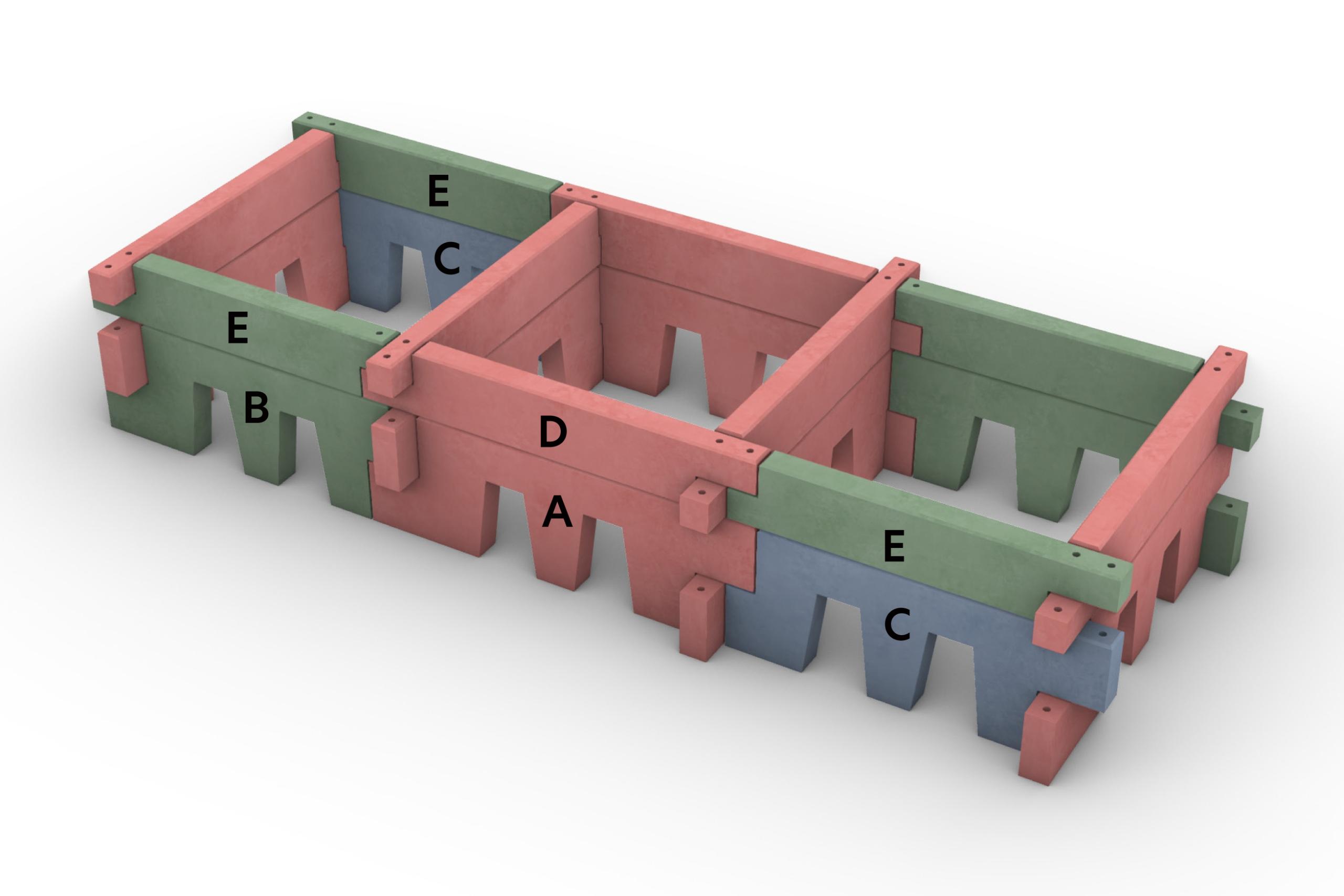 Markplattor placeras under prefab betongelmenten i samtliga hörn