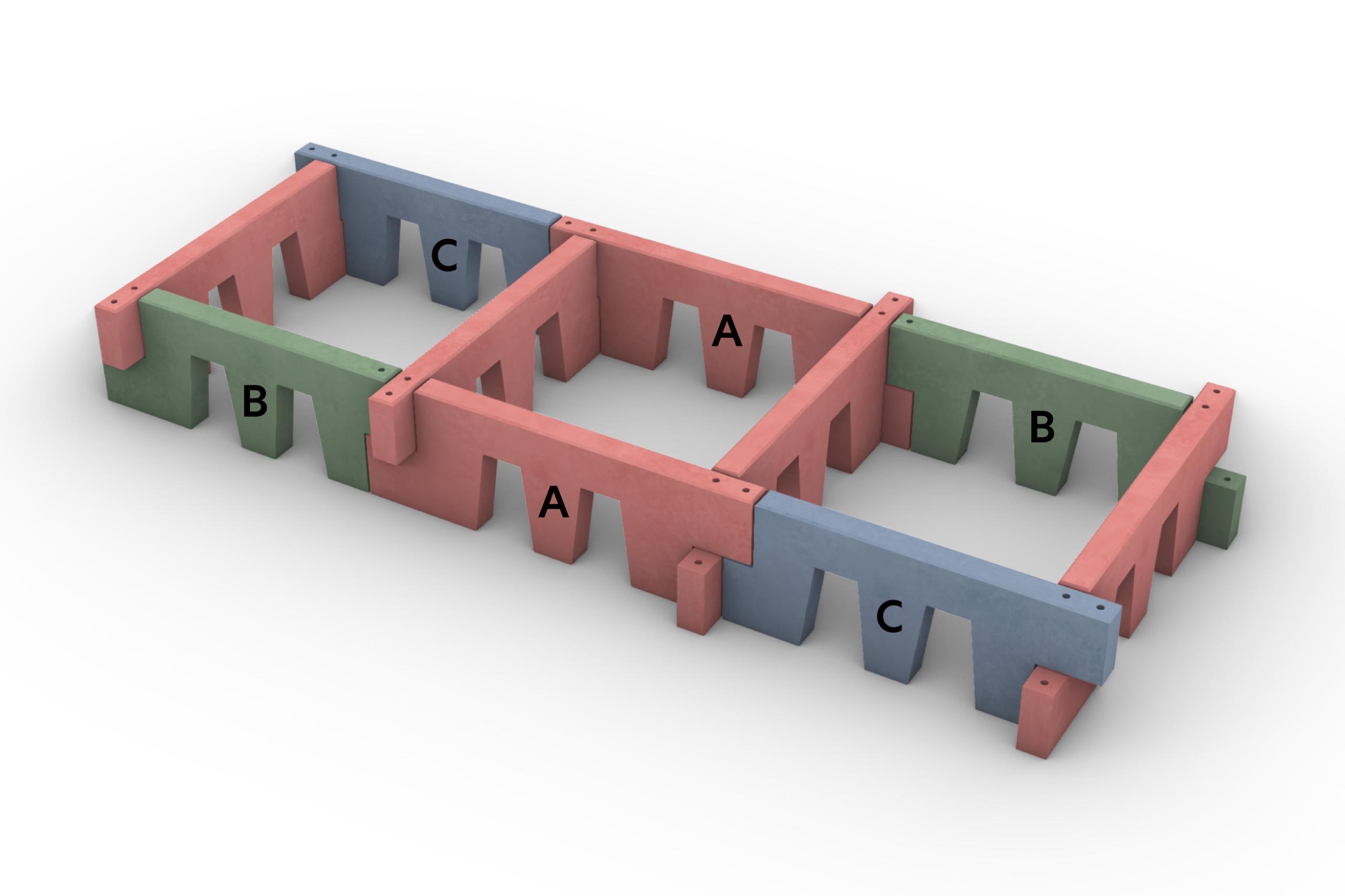 Markplattor placeras under prefab betongelmenten i samtliga hörn