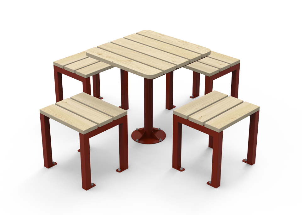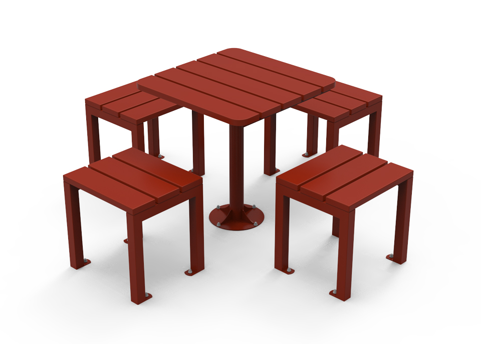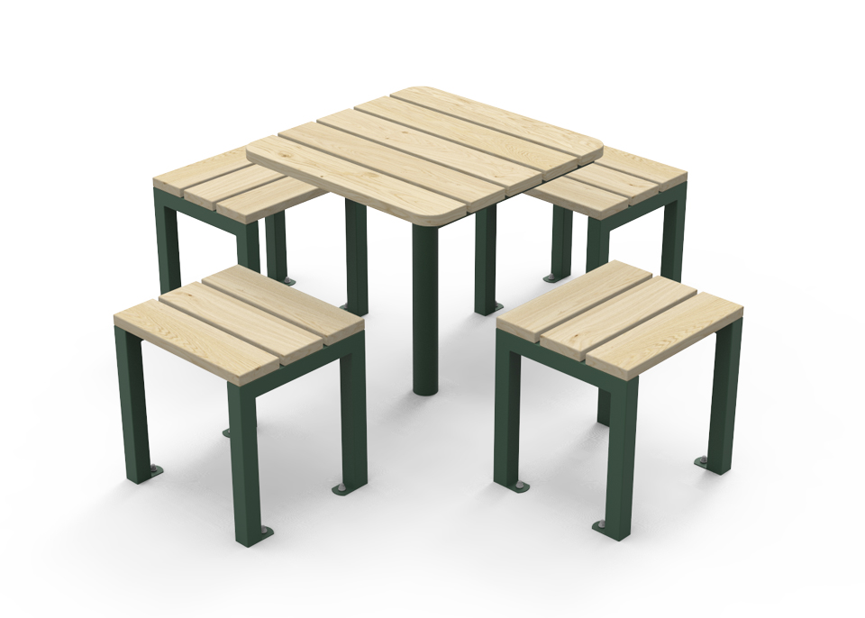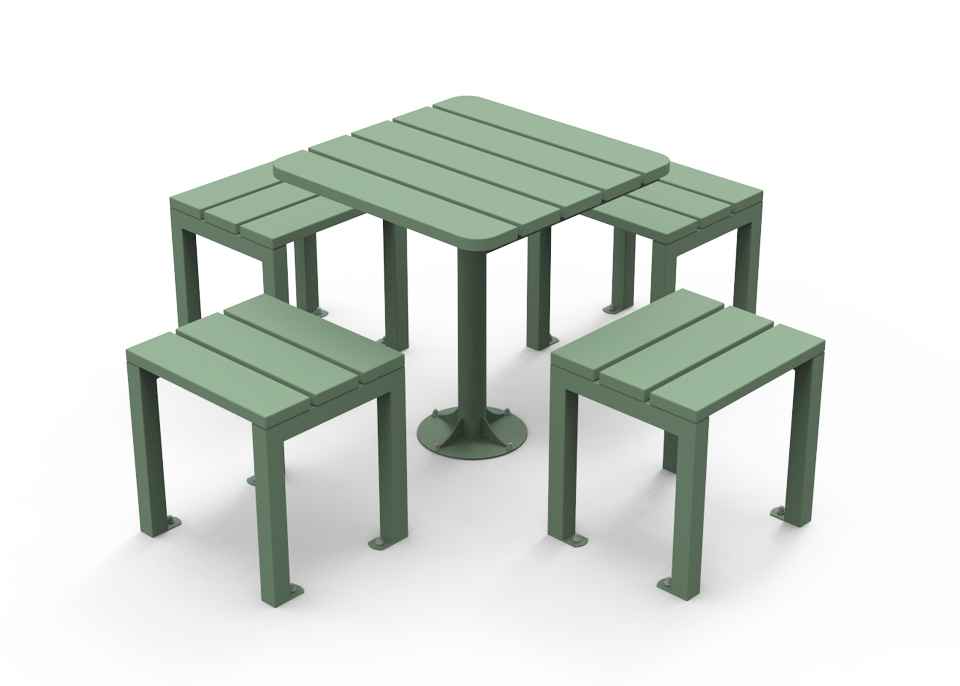 Florina möbelgrupper är robusta, enkla och funktionella möbler för park och stadsmiljö.
