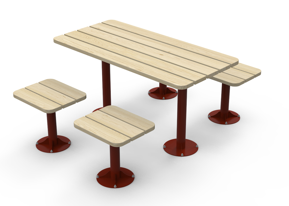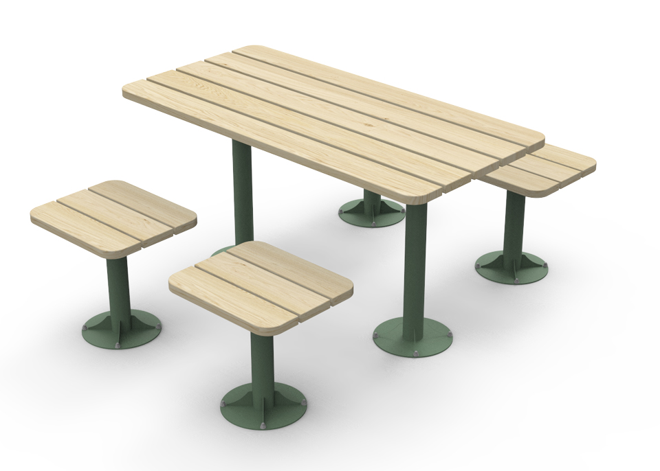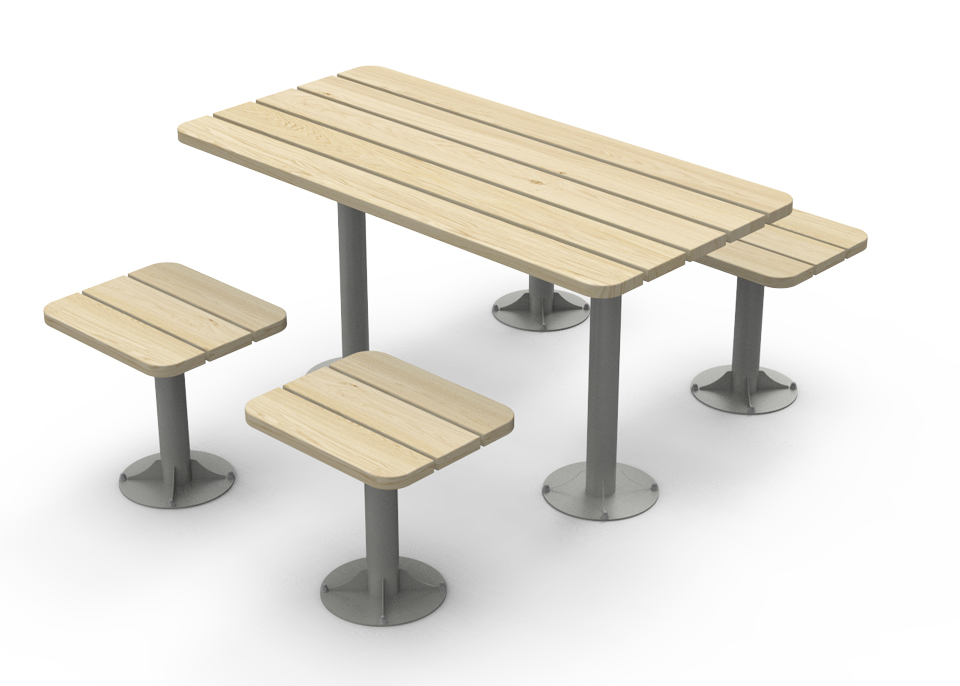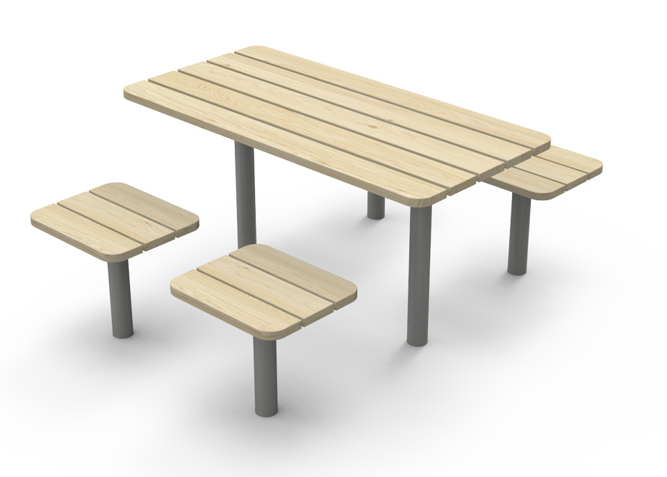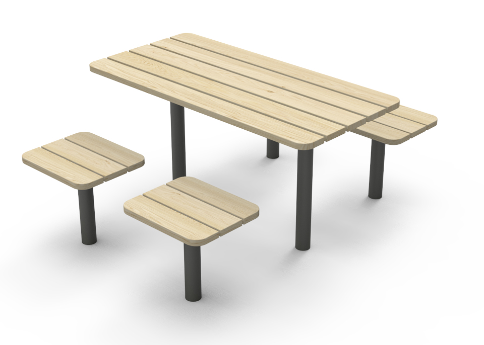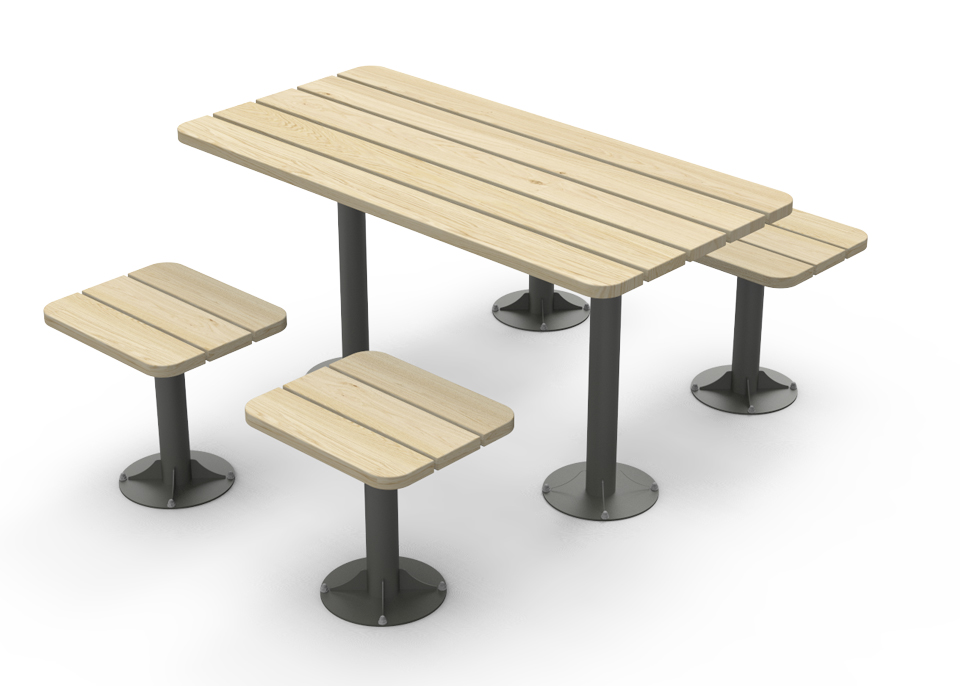 Florina möbelgrupper är robusta, enkla och funktionella möbler för park och stadsmiljö.