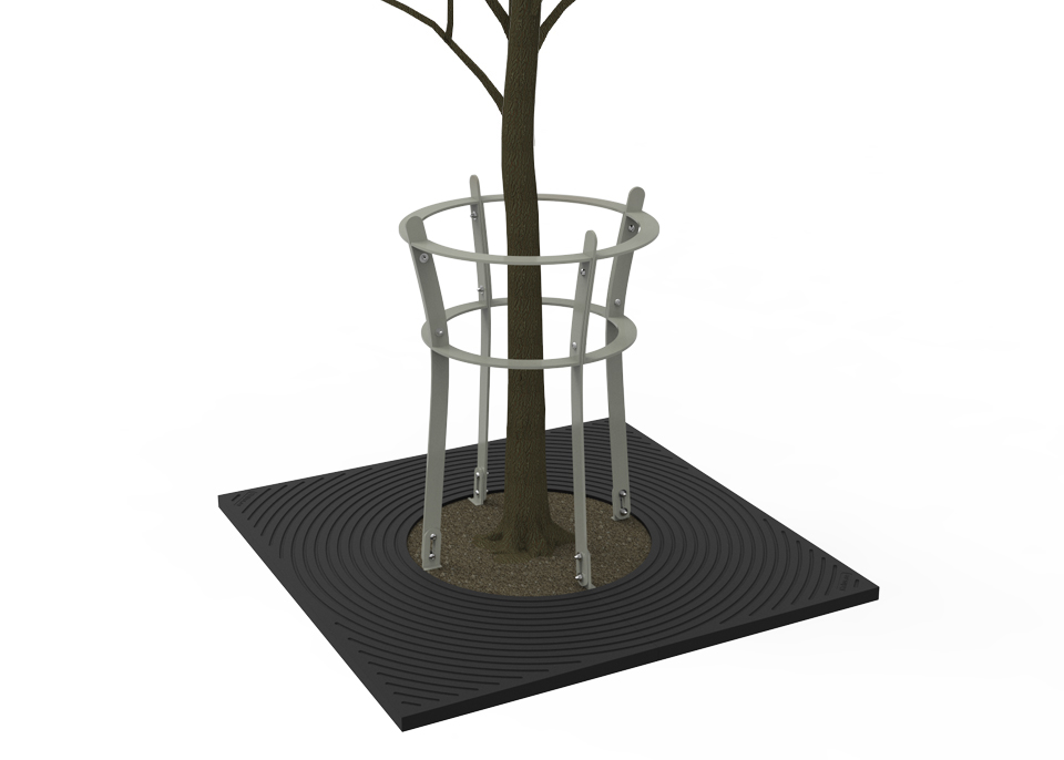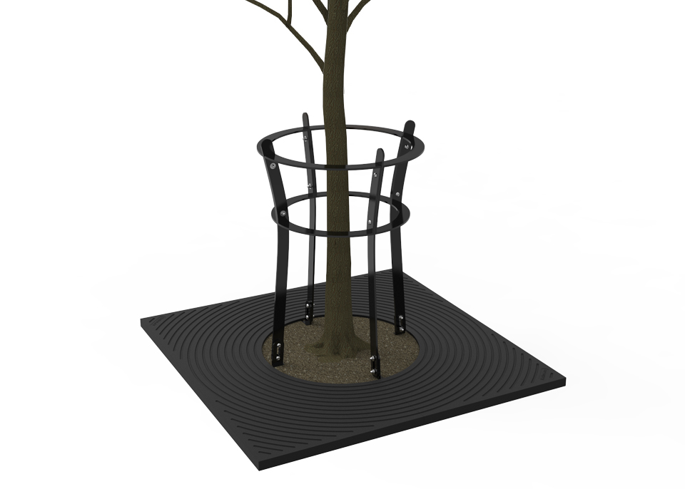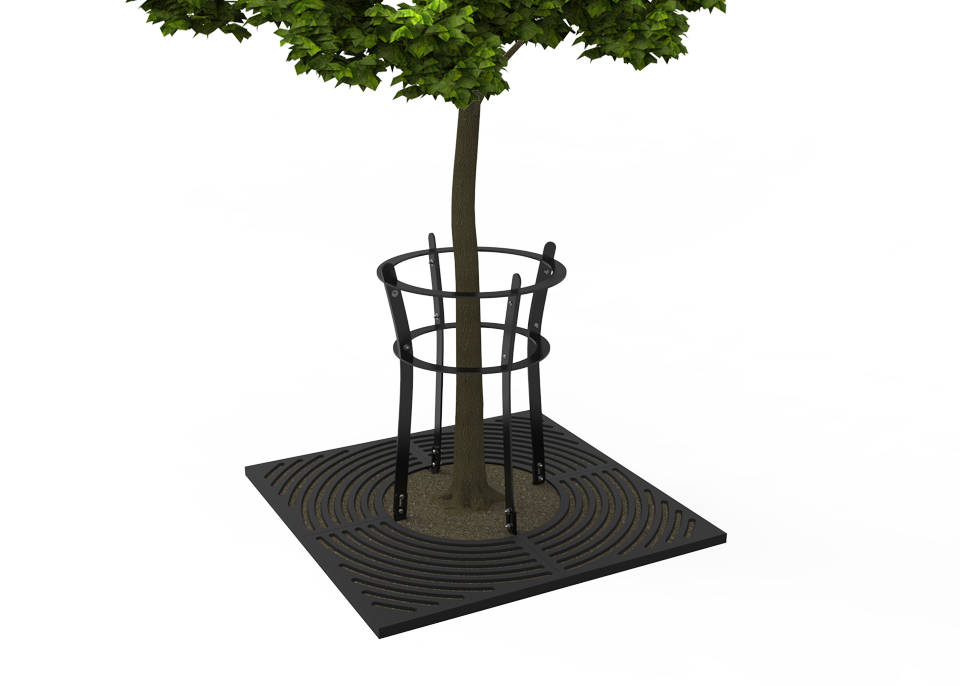 Ett diskret och stabilt skydd som omsluter utan att dölja stammen och skyddar trädet med sin klassiskt vackra form.