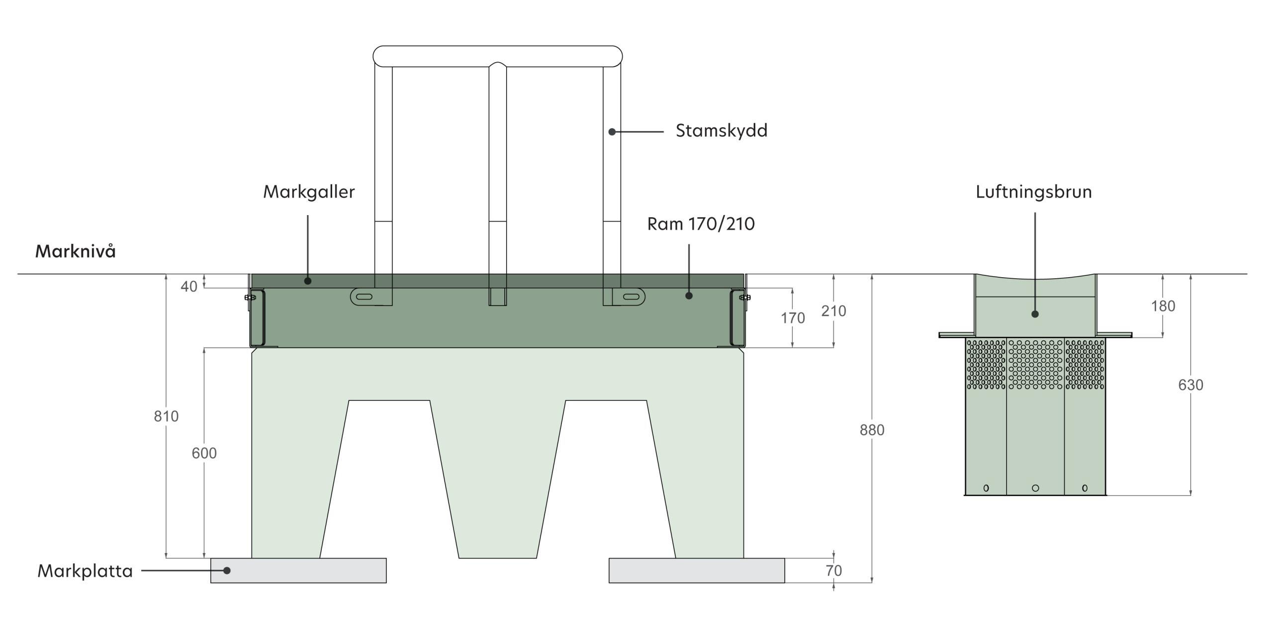 Produkter > Trädgropsfundament i stål > Sparreholm standard A2 170/210 Trädgropsram i stål